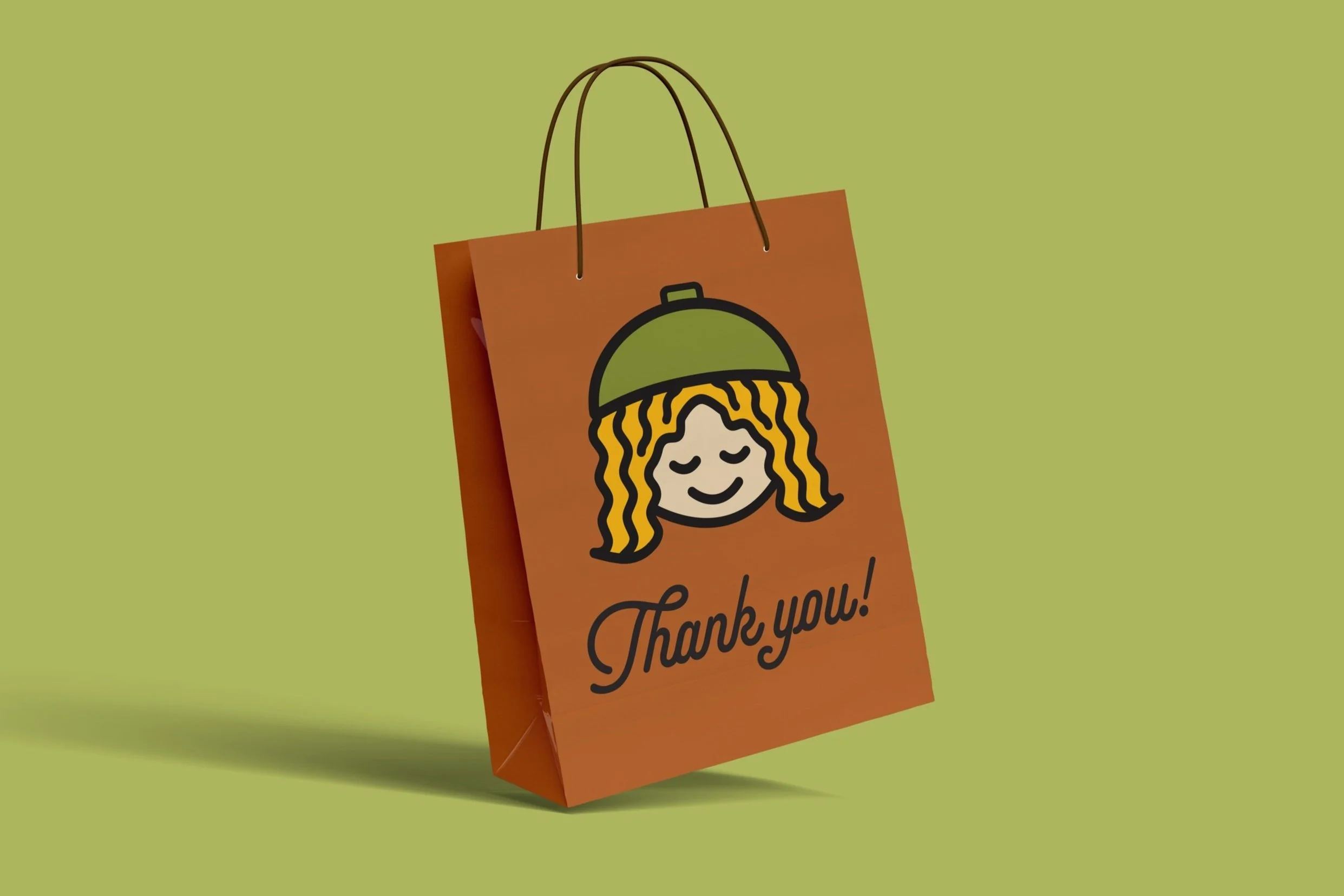 The Goddess Ramen logo embodies warmth, inclusivity, and sustainability through its playful and approachable design. The smiling Goddess with noodles for hair and a soup bowl for a hat conveys friendliness, fun, and a direct connection to the cuisine. Overall, the logo reflects Goddess Ramen’s mission to provide delicious, ethically sourced food and create a welcoming, joyful dining experience for all.